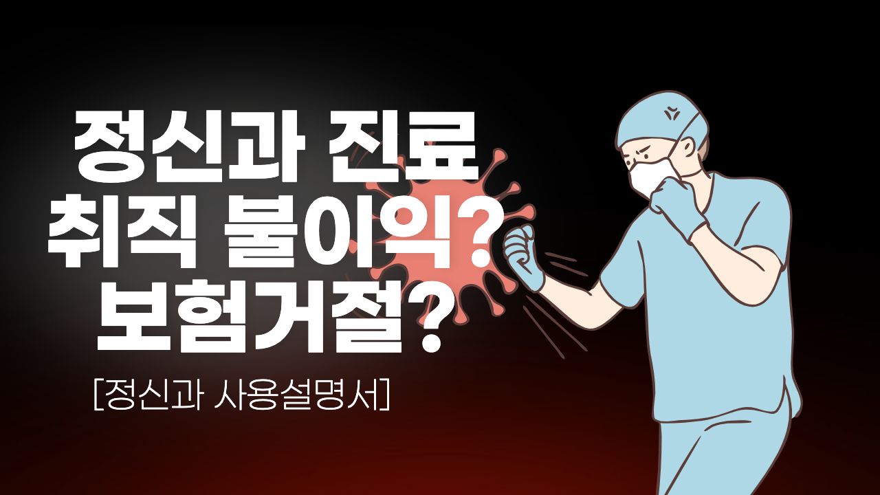 최근 몇년 사이에 자신의 정신건강상태가 좋다고 느끼는 이들의 비율이 점점 낮아지고 있지만, 정신과의 문턱을 넘기는 여전히 어렵습니다. 정신과 진료를 받기 힘든 이유는 무엇일까요? 우리는 왜 정신과 진료를 어려워 할까요? 이유? 정말 소문처럼 정신과 진료를 받으면 취직에 불이익을 받을까요? 정신과 치료를 받으면 보험가입이 거절당한다는 말은 사실일까요? 보험가입 거절시 대처법을 포함하여, 약물처방의 두려움에 대해서 까지 이야기해 보았습니다.